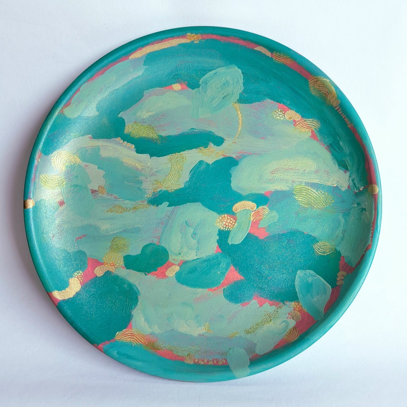 “絵を描くように即興的に”を意識してひとつひとつ、まったく同じものが存在しない美しい漆のおちょこと絵皿。岐阜で生まれ育って体感してきた自然の景色や記憶を瑞々しく漆で描き映しています。