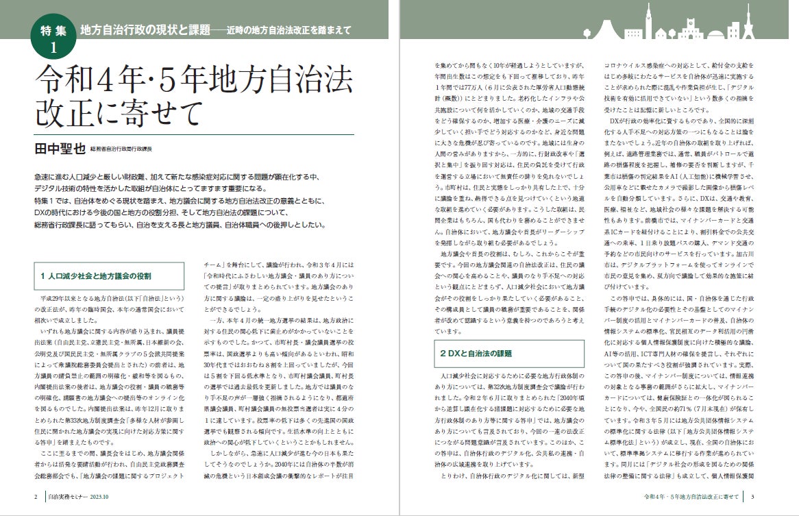 【自治実務セミナー】自治体法務に関する旬なテーマを毎月お届け!10月号では、近時の地方自治法改正を踏まえて「地方自治行政の現状と課題」の本質に迫ります!