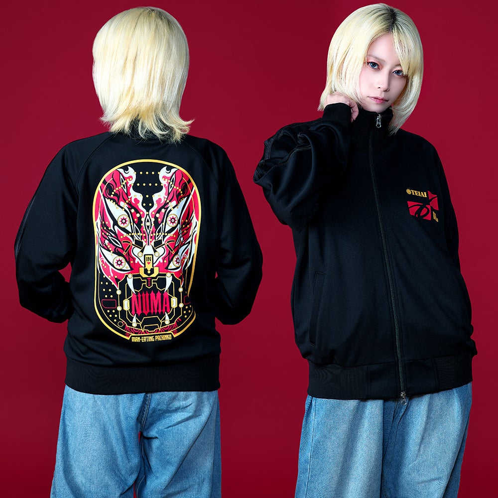 帝愛グループ裏カジノの名物、24時間営業の高レート裏パチンコ、通称「人喰いパチンコ 沼」をモチーフにデザインされたオリジナルジャージが登場!胸元には作中に登場するカードのデザインをプリントし、背面には「パチンコ 沼」のパチンコ台が、まさに人喰いの形相で睨みを効かせるど迫力デザイン!