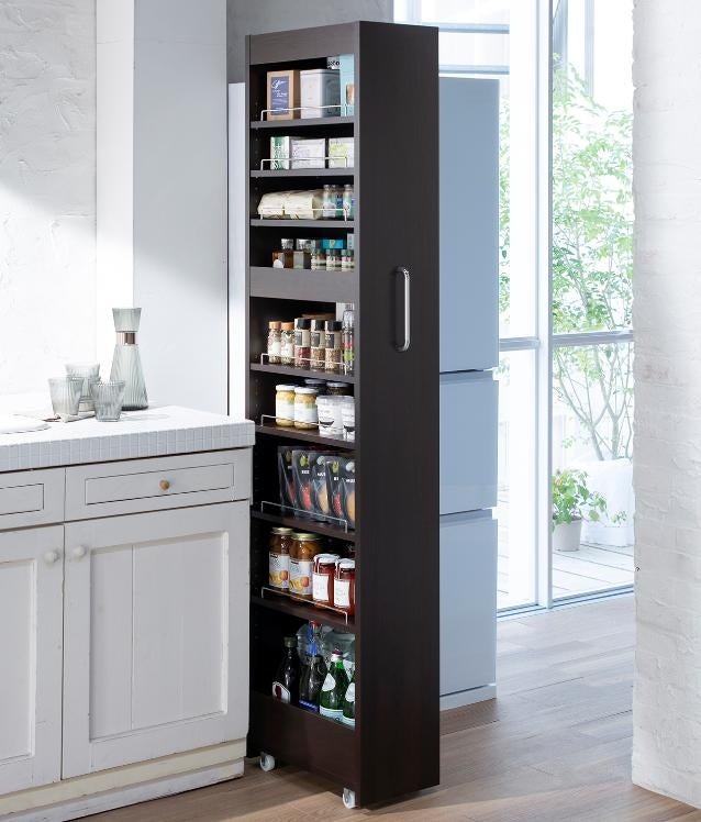 「冷蔵庫横のすき間をどうにかしたい」「散らかりがちなキッチングッズや調味料を片付けたい」「狭いキッチンだけどスッキリ綺麗に保ちたい」というお客様におすすめの、オーダー頑丈すき間ワゴンをこの度発売致しました。ちょっとしたすき間も収納に変えることが出来るキッチン収納です。幅10cm~35cmの間から1cm単位でオーダーでき、気になるすき間にジャストフィット!