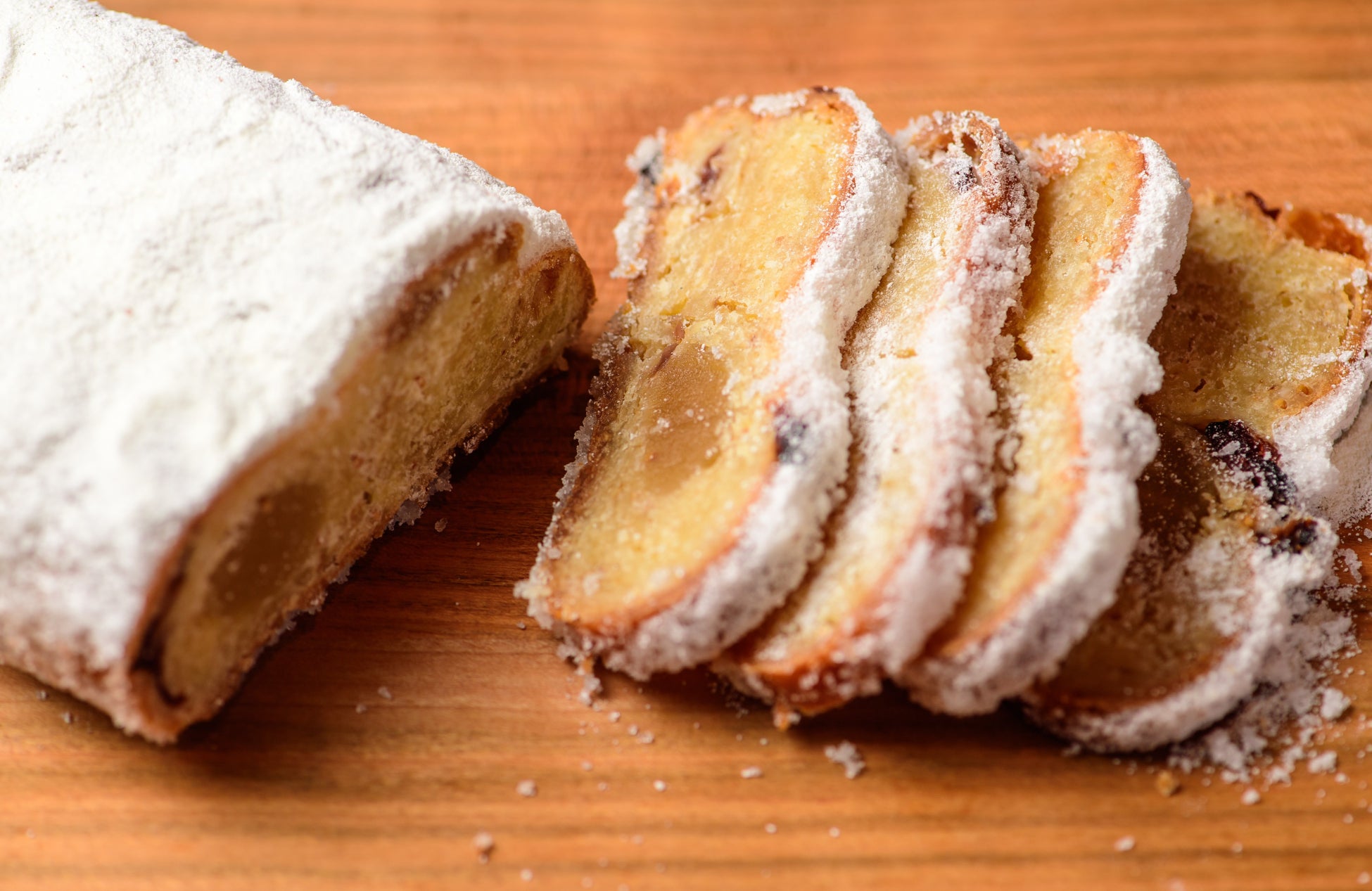 ドイツに伝わる伝統的な発酵菓子パンです。ドライフルーツやナッツ、シナモンなどの香辛料を練り込み、日がたつにつれフルーツの旨みや香辛料・バターが生地に馴染み、深い味わいが生まれゆっくりと味わうことができます。