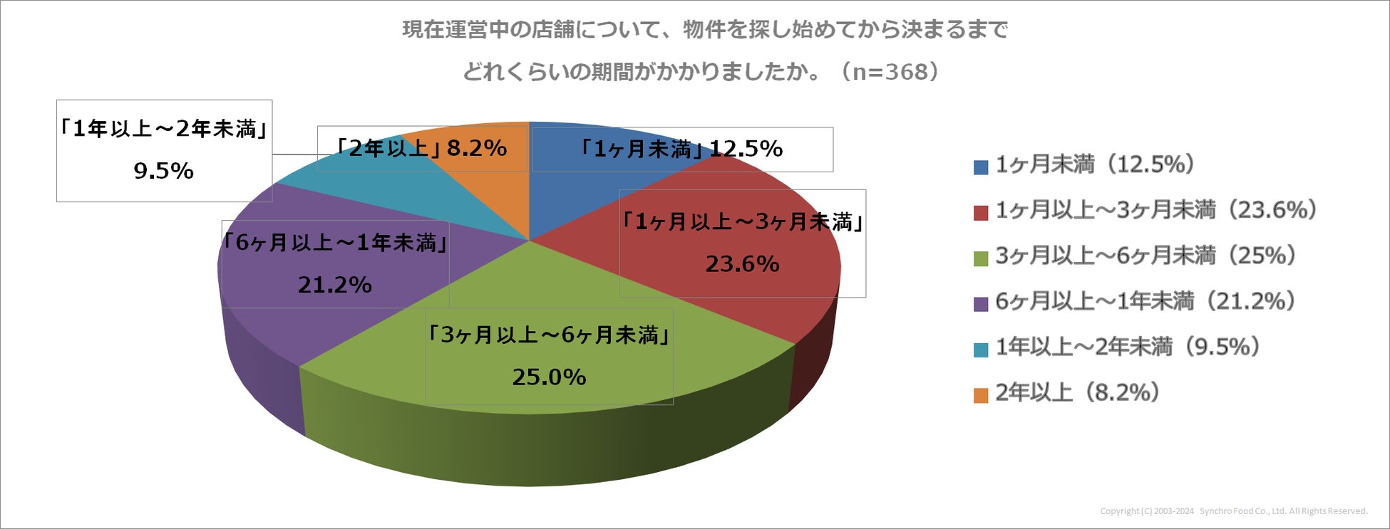 物件探し開始から決定まで、「3か月以上」かける飲食店が約6割