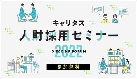 株式会社ディスコ(本社:東京都文京区、代表取締役社長:新留正朗)は、企業の新卒採用担当者を対象に「キャリタス人財採用セミナー」を2022年7月20日(水)にオンラインにて開催(参加費無料)いたします。本セミナーでは、2023年卒採用戦線のここまでを振り返り、学生の最新動向や各企業の取り組みについてお話しいたします。また、2024年卒採用以降の採用市場を見据え、企業の皆様と今後、何を準備すべきかを一緒に考えていきたいと思います。