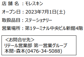 2023年7月1日(土)、第1ターミナル中央ビル新館4階に「モレスキン」がオープンします。