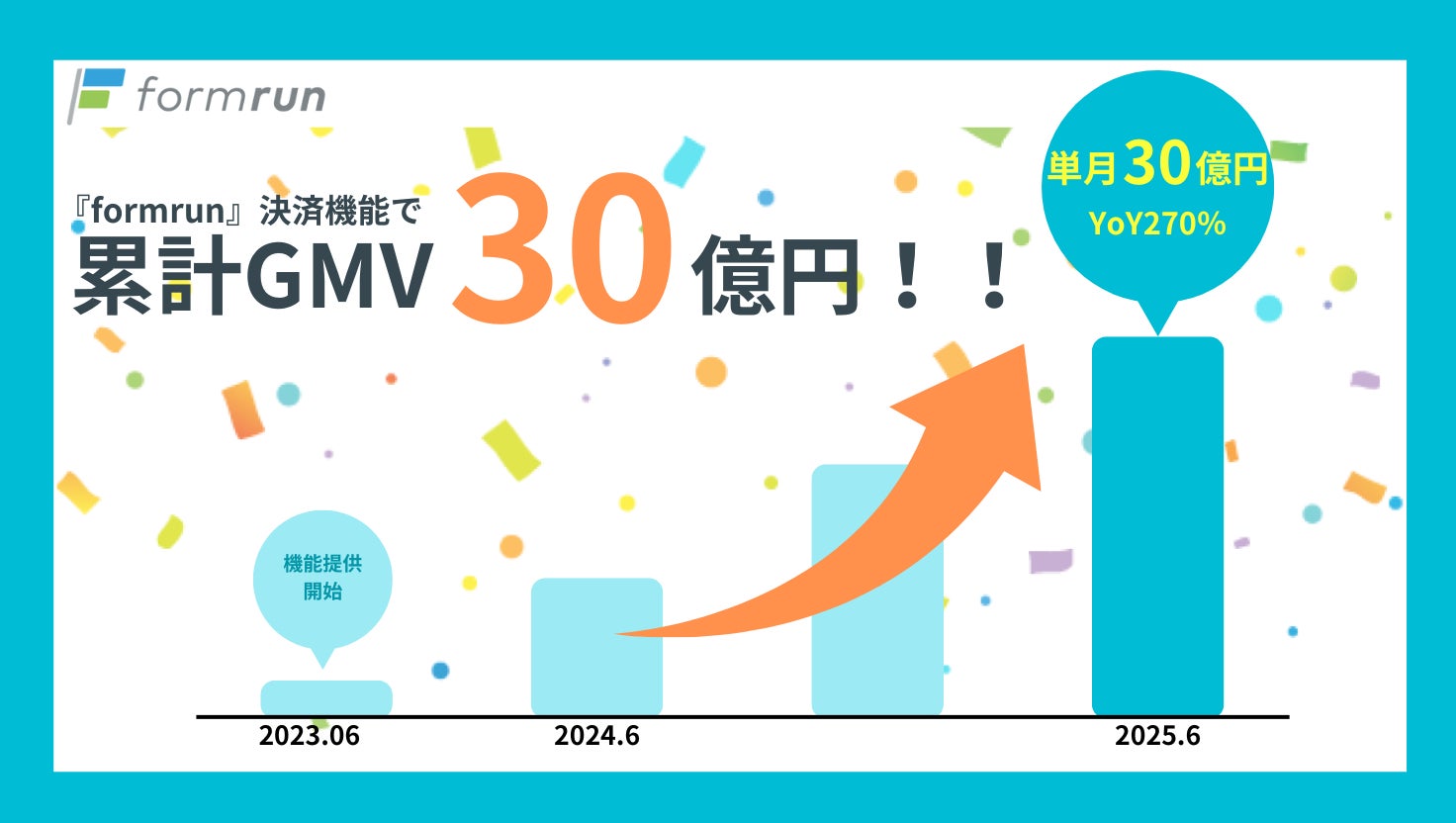 株式会社ベーシック(本社:東京都千代田区、代表取締役:秋山勝、以下「当社」)は、累計45万ユーザーが利用するフォーム作成管理ツール『formrun』の決済機能において、2025年6月時点で取引総額は累計GMVも30億円に到達しました。