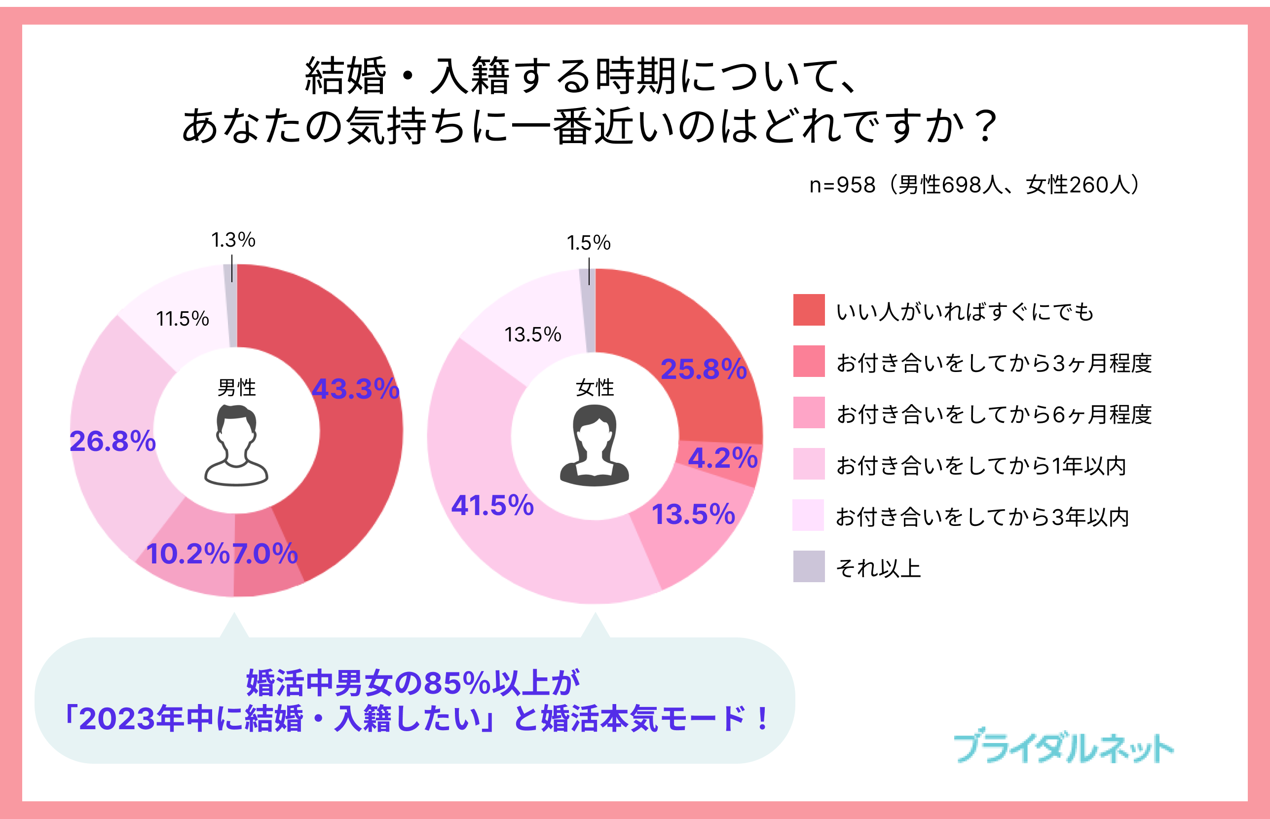 婚活中男女の85%以上が「2023年中に結婚・入籍したい」と婚活本気モード!