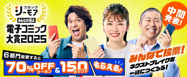 エヌ・ティ・ティ・ソルマーレ株式会社(本社:大阪市中央区、代表取締役社長:朝日利彰、以下 NTTソルマーレ)が運営する、国内最大級の総合電子書籍ストア「コミックシーモア」は、2024年9月24日(火)より投票を開始した「次にヒットする作品はこれだ!」というネクストブレイクを読者の投票で決める『みんなが選ぶ!!電子コミック大賞2025』の中間結果を発表いたします。なお本発表では、6部門ごとの得票数上位5作品を公開いたします。