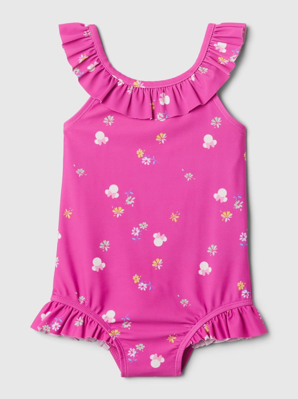 ベビーガールは、フリル付きワンピースや、ミニーマウスがプリントされたビビットピンクのワンピース、ラッシュガード×ボトムスの2点セットなど、ワンピースだけでなくセットアップも充実。パステルカラーの小花柄ショートオール×帽子の2点セットは、前ジップデザインなので着脱しやすく、初めての海やプールデビューをする小さなお子様にもおすすめです。ベビーボーイは、カラフルなバイカラートランクスが登場し、ボーイズとお揃いが楽しめます。
