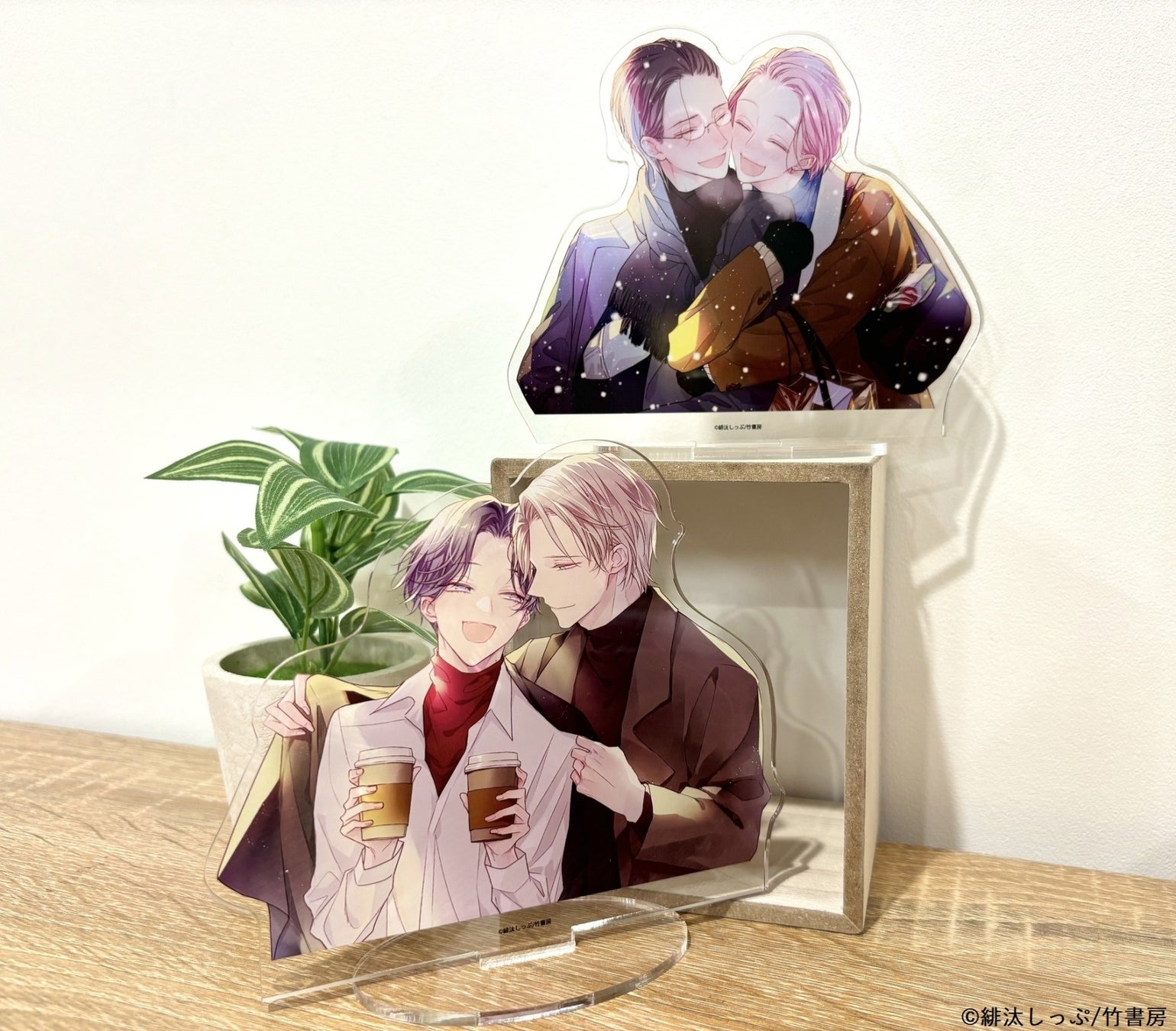 縦横最大15cmのアクリルスタンドは、カップルたちのあま~い日常を覗き見できるファン必携の眼福アイテム。ぴったりくっついて買い物デートをする楓悟くんと廉くん、コートをかけてあげる獅子戸さんと嬉しそうに笑うレンくんが最高すぎます!