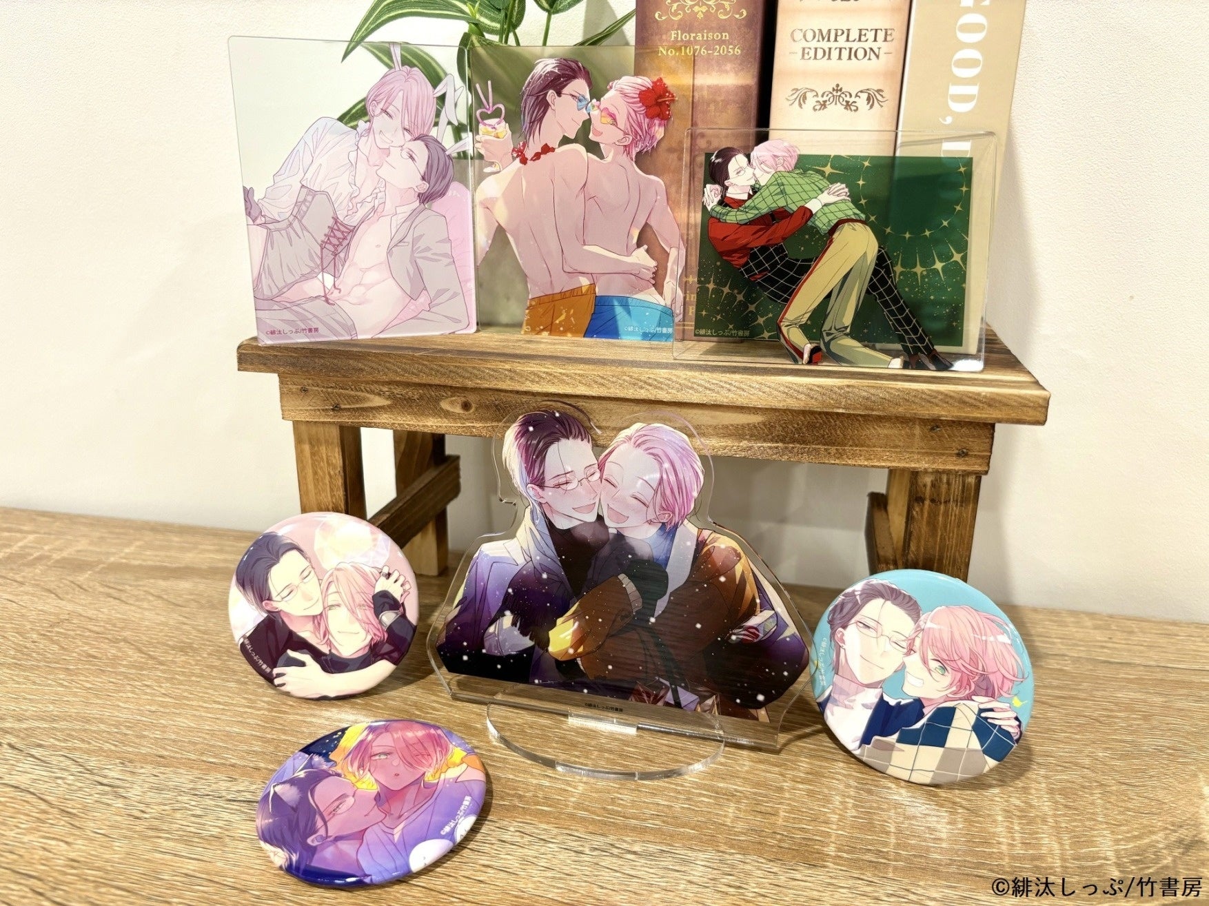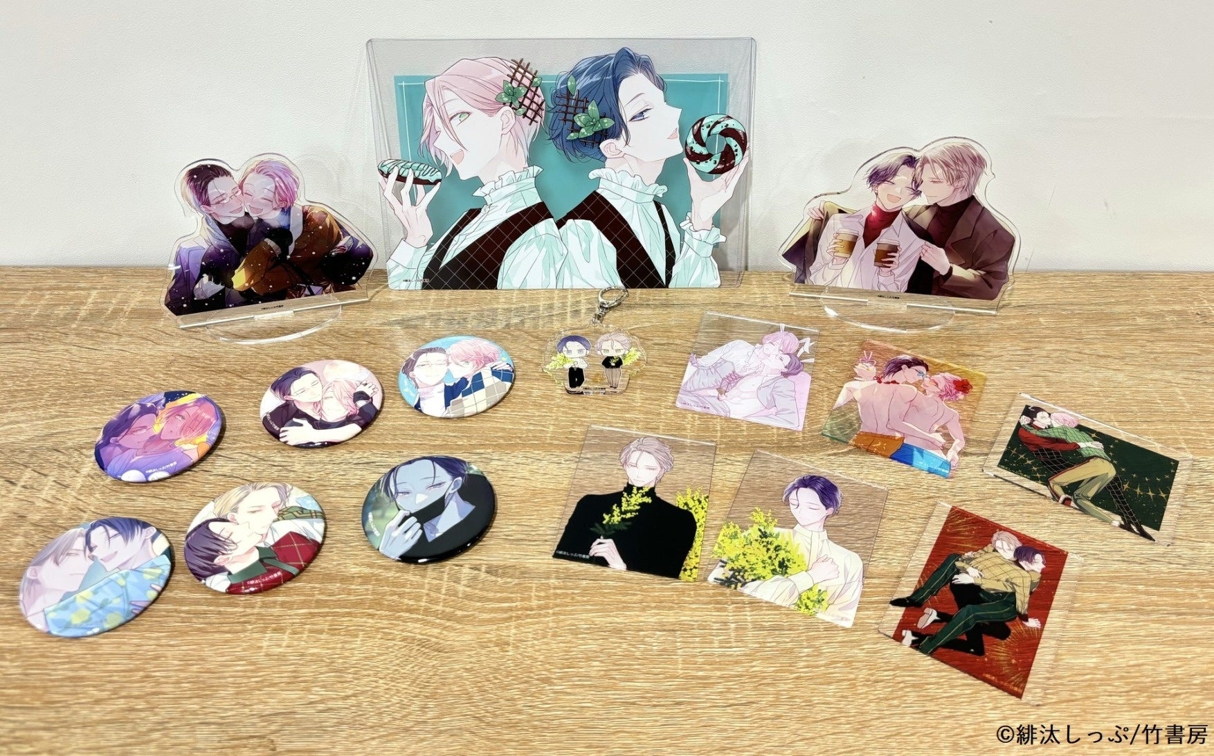ほかにも、しっぷ先生のSNSで公開された“廉&レン”の美人受ツーショットや“ちまれんじ&ちまししど”のミニキャラなど、貴重なイラストを使ったアイテムが盛りだくさん。