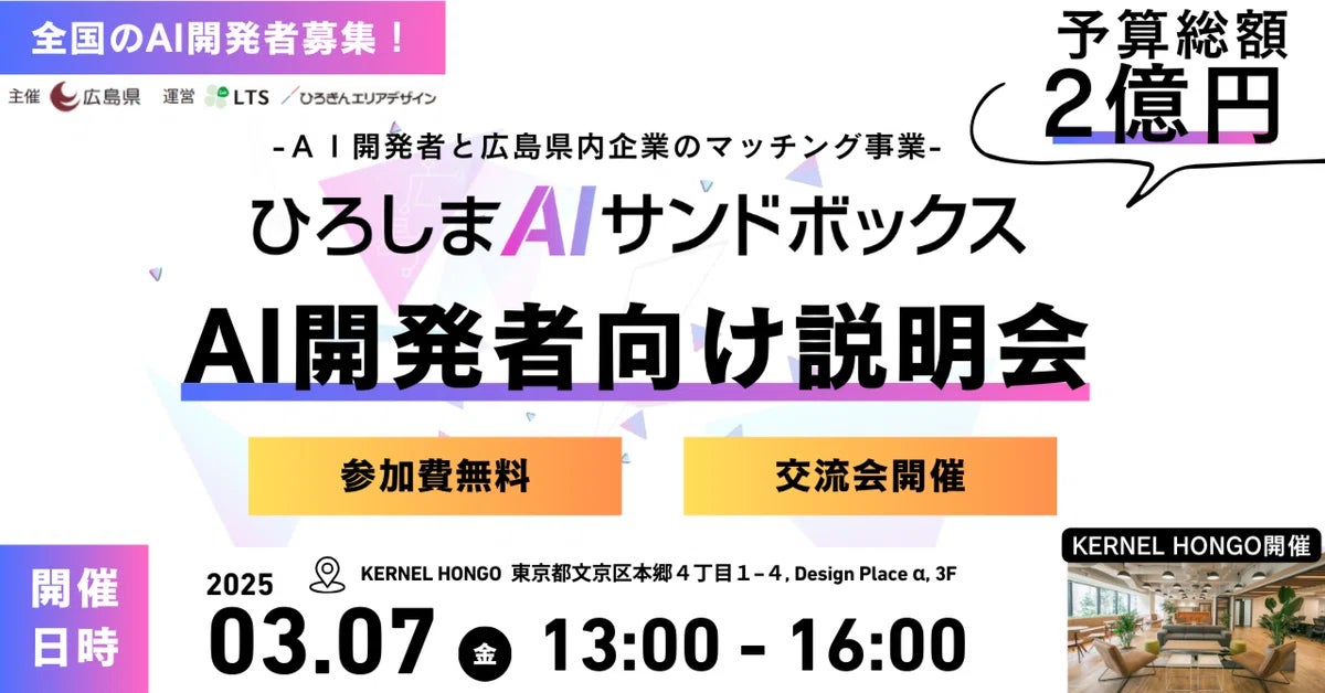 【3/7(金)開催!】ひろしまAIサンドボックスプロジェクト、AI開発者向け説明会を開催します