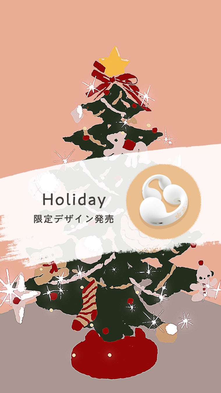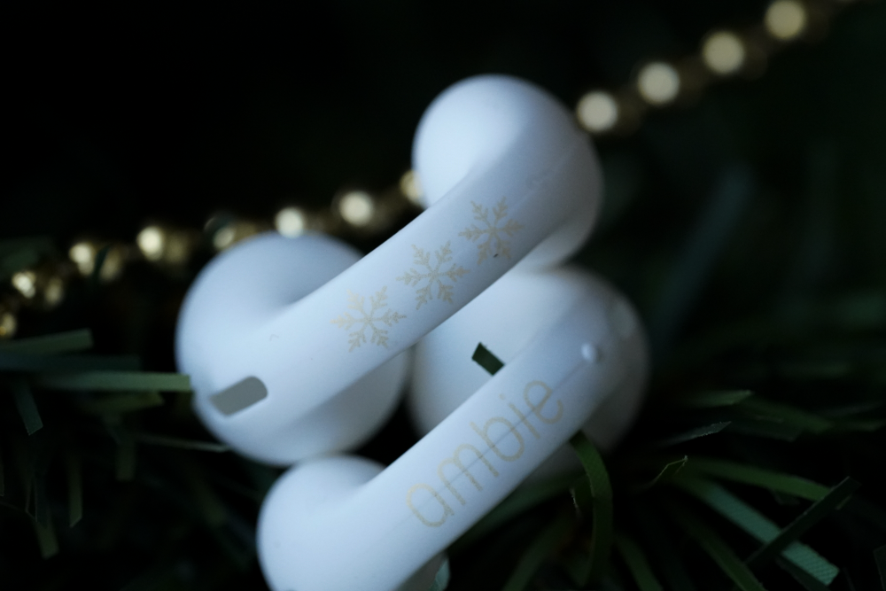 また、この度発売される専用着せ替えカバ―「ambie socks」の季節限定カラー「Holiday」は、白色のカバーに雪の結晶が淡いゴールドでプリントされたデザインで、冬の耳元を華やかに彩ります。