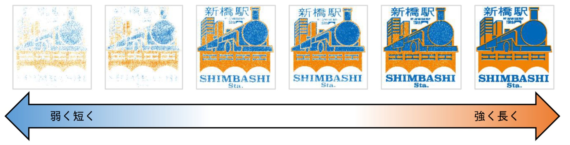 ・スタンプの大きな特徴として、画面を押す強さによって表現されているスタンプの“にじみ”や“かすれ”が変化する仕様となっています。また、JR各社のコーポレートカラー6色だけで全てのスタンプが制作されているのも隠し要素となっています。