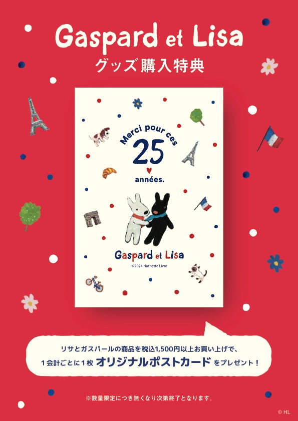 期間中、リサとガスパール商品を税込1,500円以上お買い上げで、1会計ごとに1枚オリジナルポストカードをプレゼントいたします。