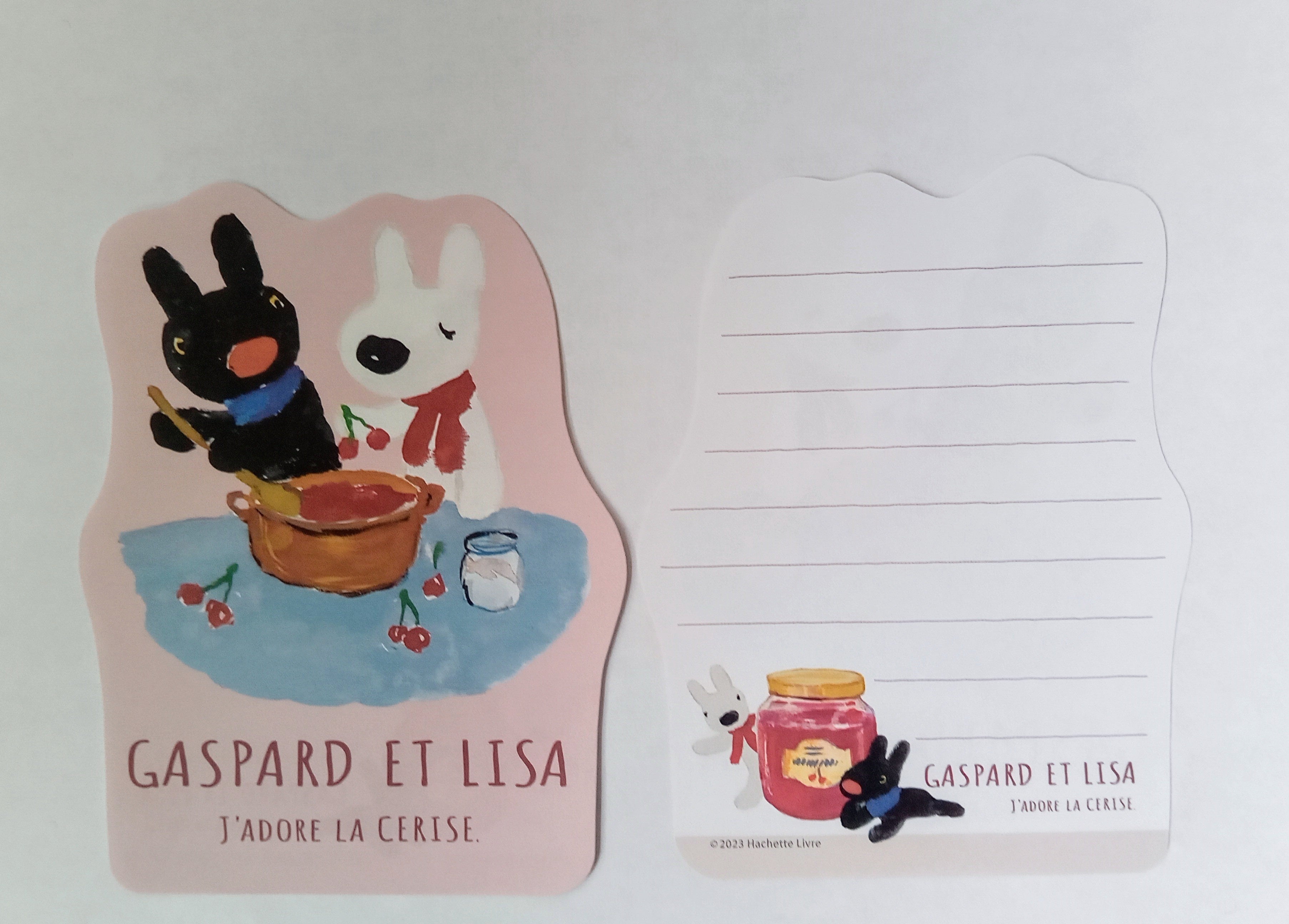 リサとガスパールが描かれた封筒3枚とダイカット便箋6枚が入ったミニレターセットです。