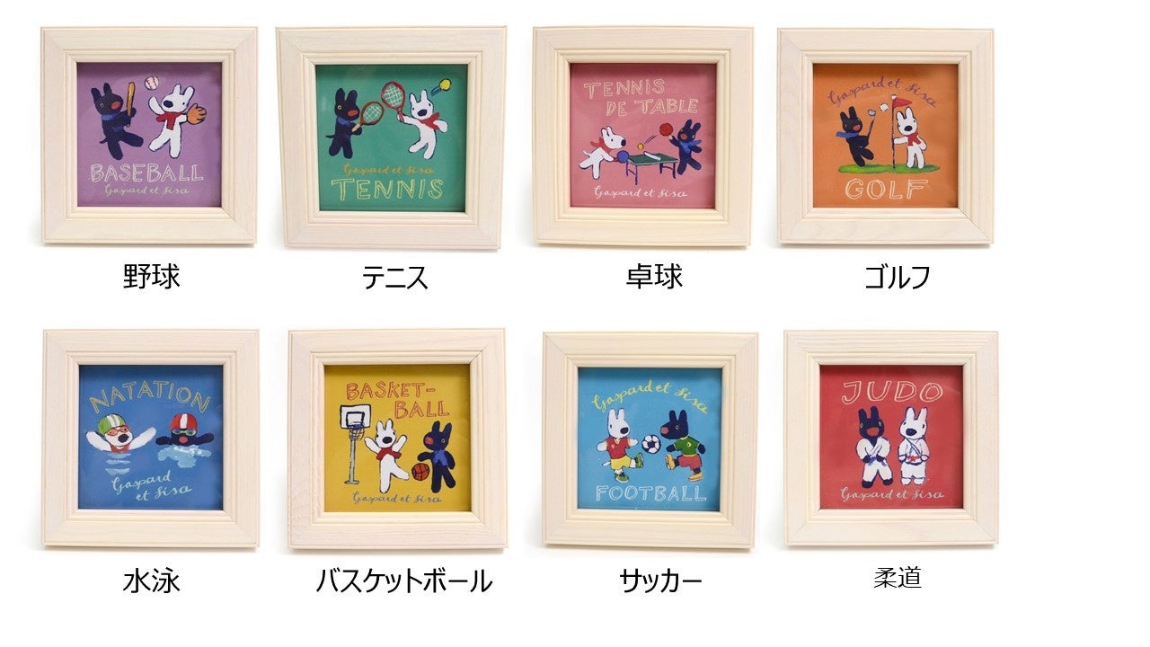 各スポーツを楽しむリサとガスパールを描いたミニサイズのアートフレームです。