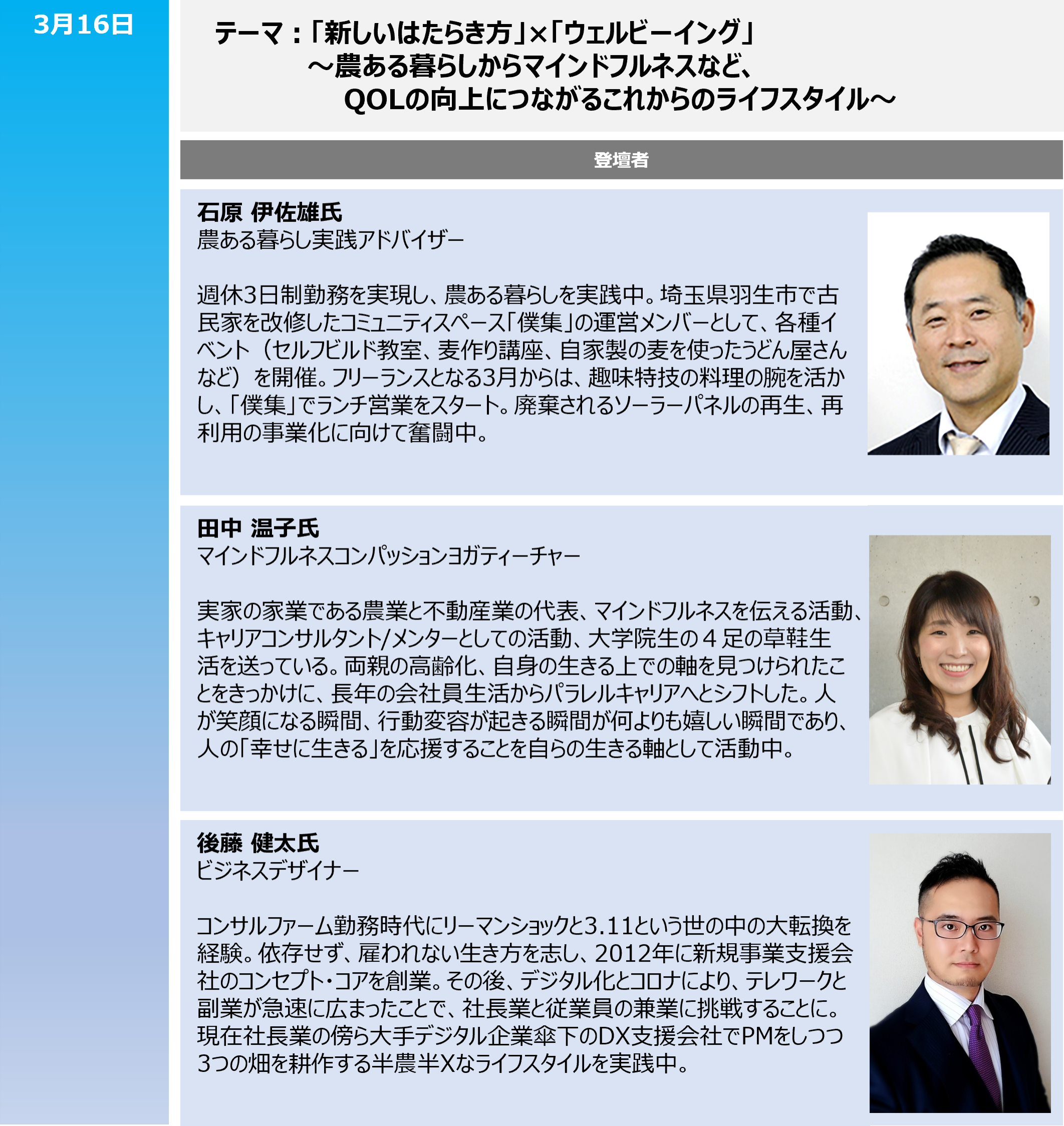 「新しいはたらき方」×「これからのライフスタイル」MEET UP EVENTS~多様なはたらき方や生き方を複数選択するマルチステージ時代を紐解く~