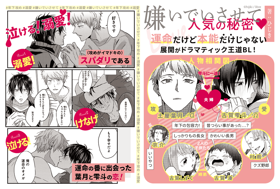 株式会社リブレ(本社:東京都新宿区、代表取締役社長:太田歳子)は、「嫌いでいさせて 4」(著:ひじき)を本日8月9日(火)に発売いたします。また、9月30日(金)にはドラマCD「嫌いでいさせて3」を発売いたします。https://www.b-boy.jp/special/kiraide-isasete/