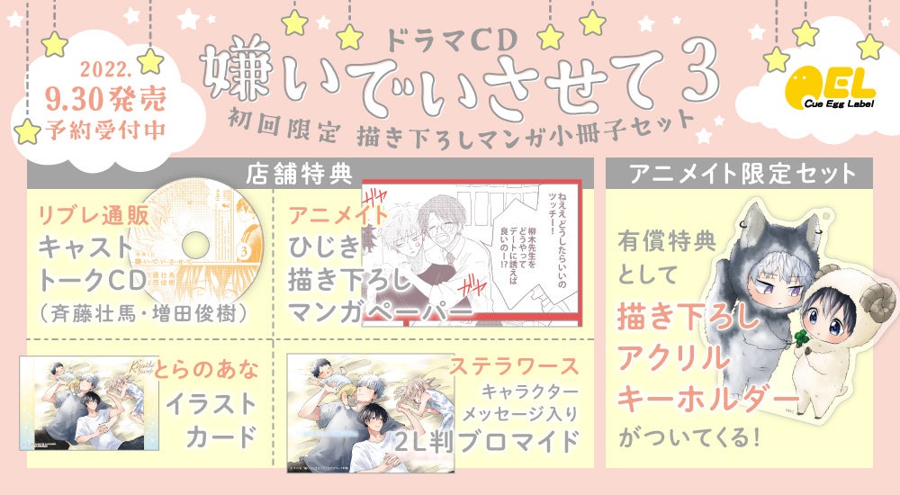 2022年9月30日に発売が決定している、ドラマCD「嫌いでいさせて3」の