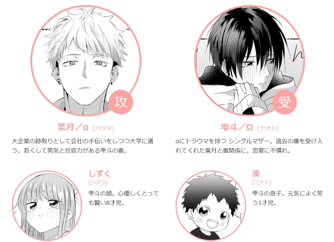番[つがい]であるαの葉月と愛娘のしずく、そして第2子・湊。大切な家族と日々を過ごすΩの雫斗は、しずくが通う小学校の運動会の日、校内で言い争う教師2人を目撃する。些細なことからその2人と関わることになった葉月と雫斗だが…?