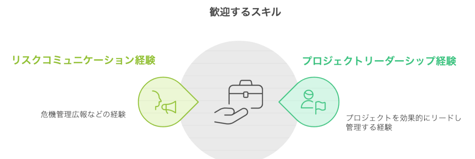 ●歓迎する経験・経験 ・ プロジェクトリーダーやマネージャーとしての経験をお持ちの方 ・ 危機管理広報など のリスクコミュニケーションに関する経験をお持ちの方