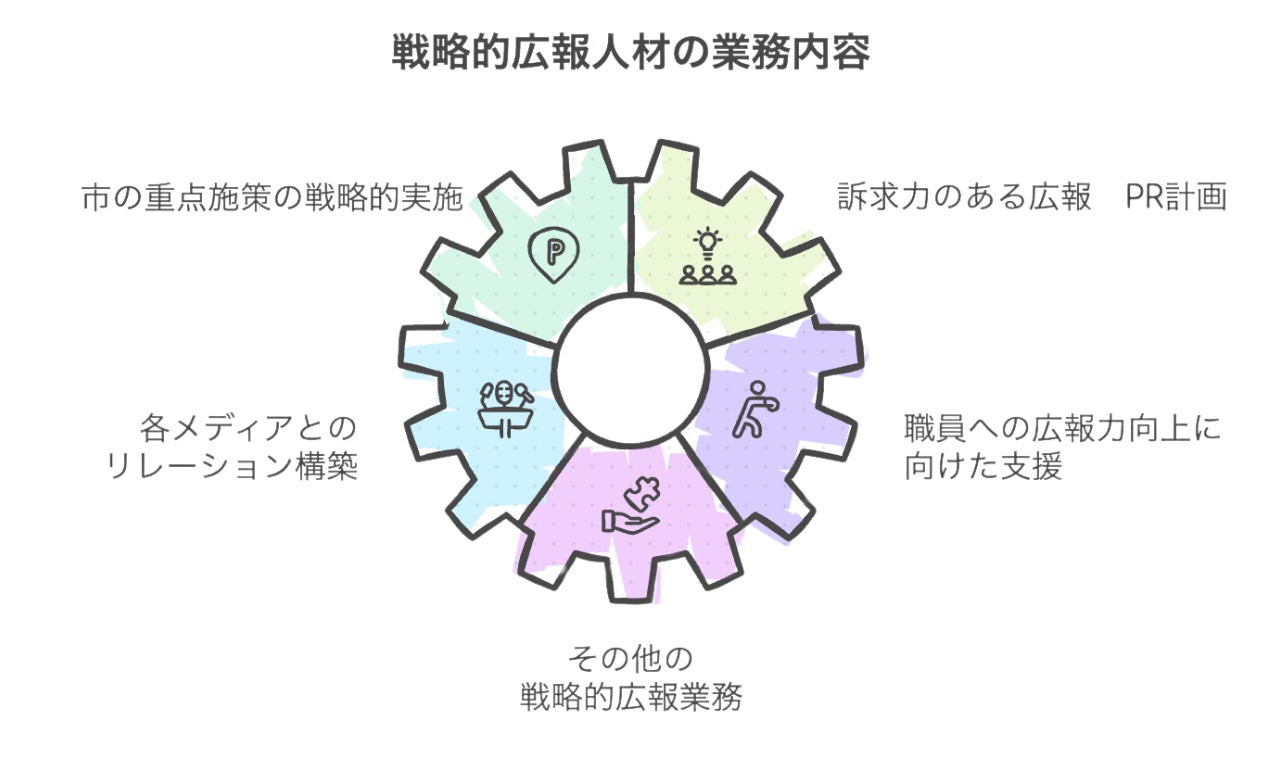 市の魅力を再定義しつつ、広報計画の立案・実行を担います。また特定任期付職員、課長級の待遇で迎えられ、年収は850~900万円を想定。