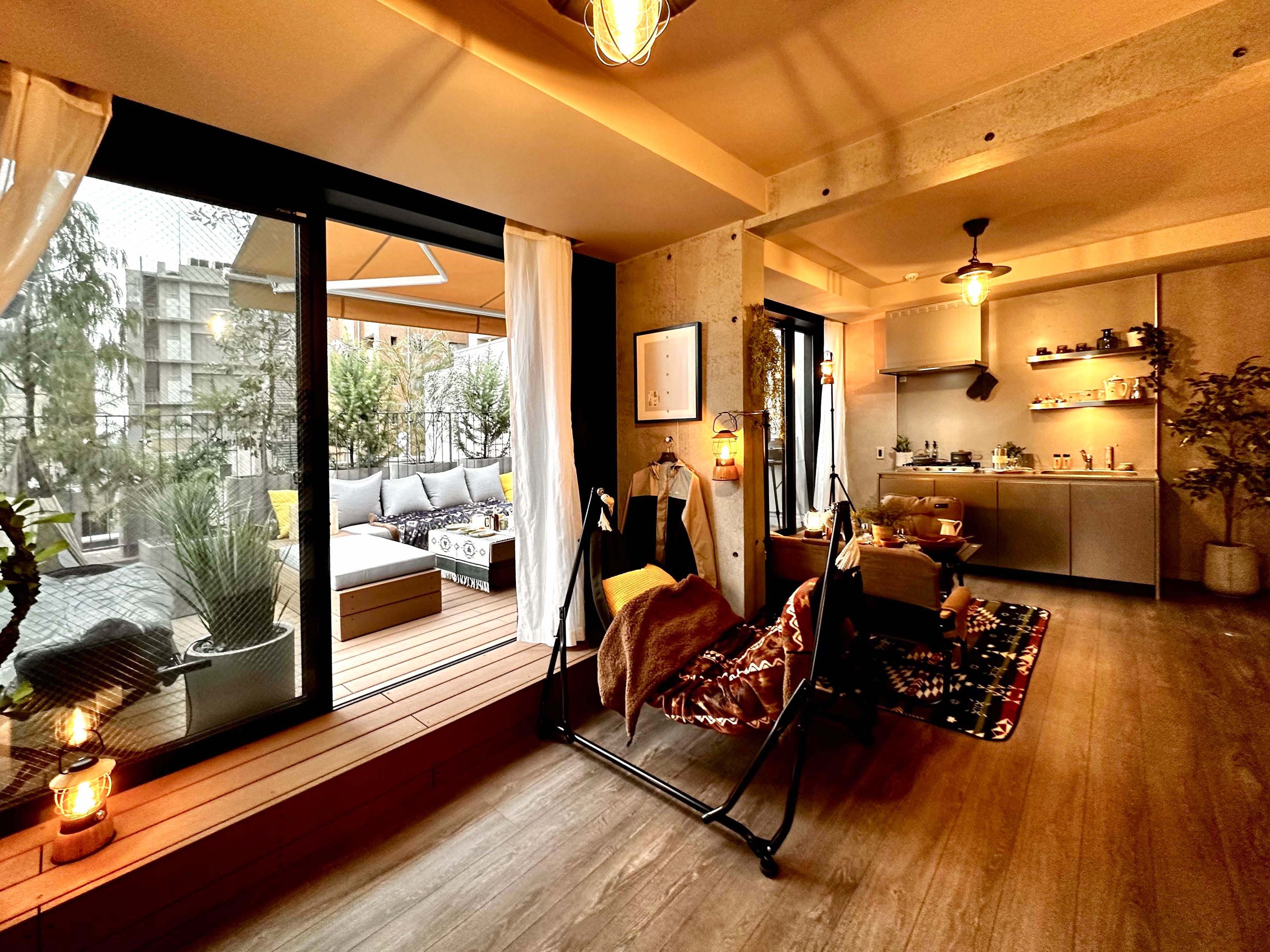 第一弾は、2023年4月に完成した「ROOTs Shibuya Honmachi(ルーツシブヤホンマチ)」の最上階(6階)特別ルームです。都営大江戸線「西新宿五丁目」駅から徒歩5分という大都会にいながら、アウトドアを楽しめる、新しいアーバンライフの物件です。