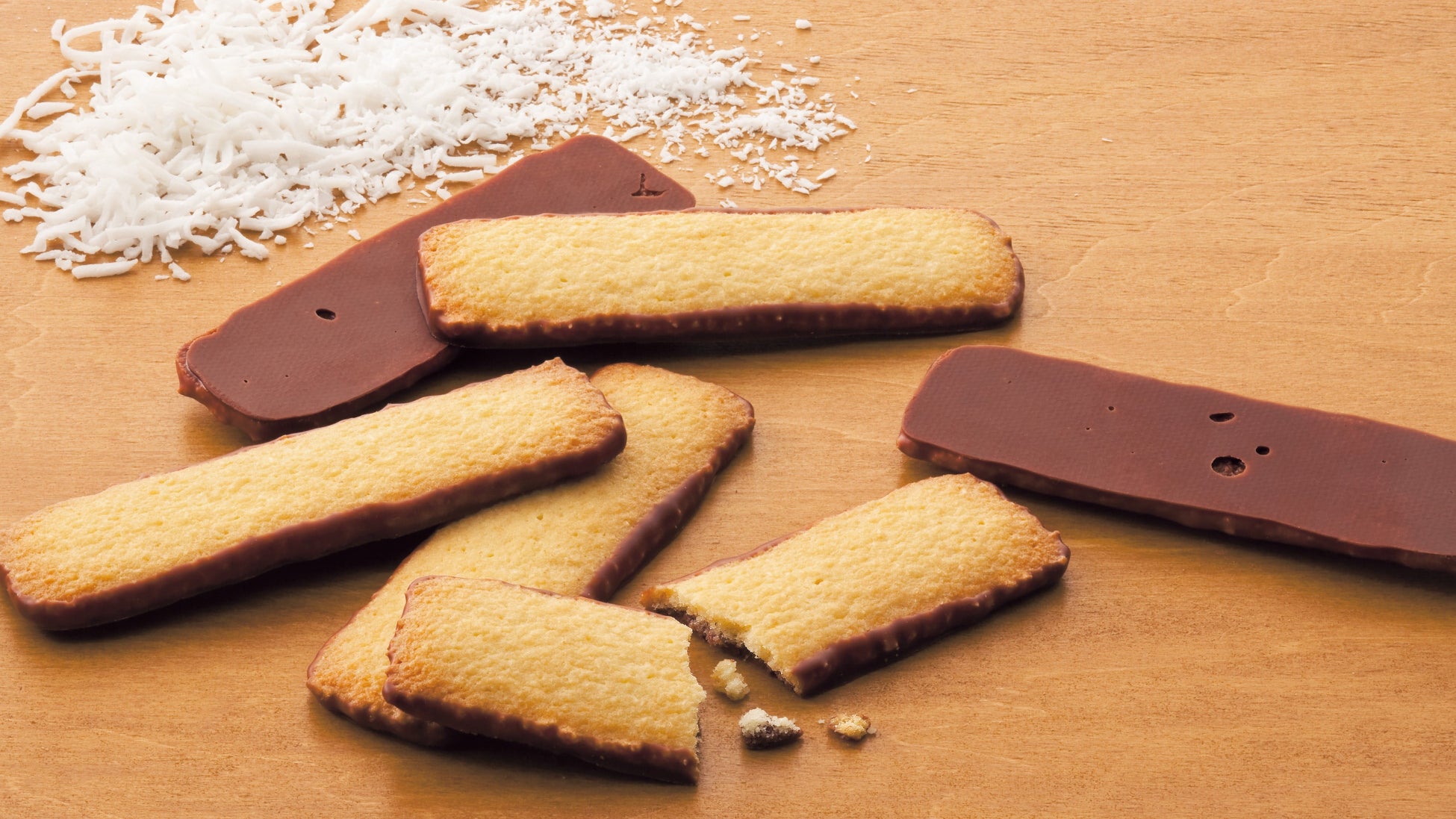 じっくりとローストしたココナッツを混ぜ、こんがりキツネ色に焼き上げたクッキー。片面にはチョコレートをコーティングしました。さくさくとした軽快な歯ごたえと、香ばしくまろやかな風味をお楽しみください。
