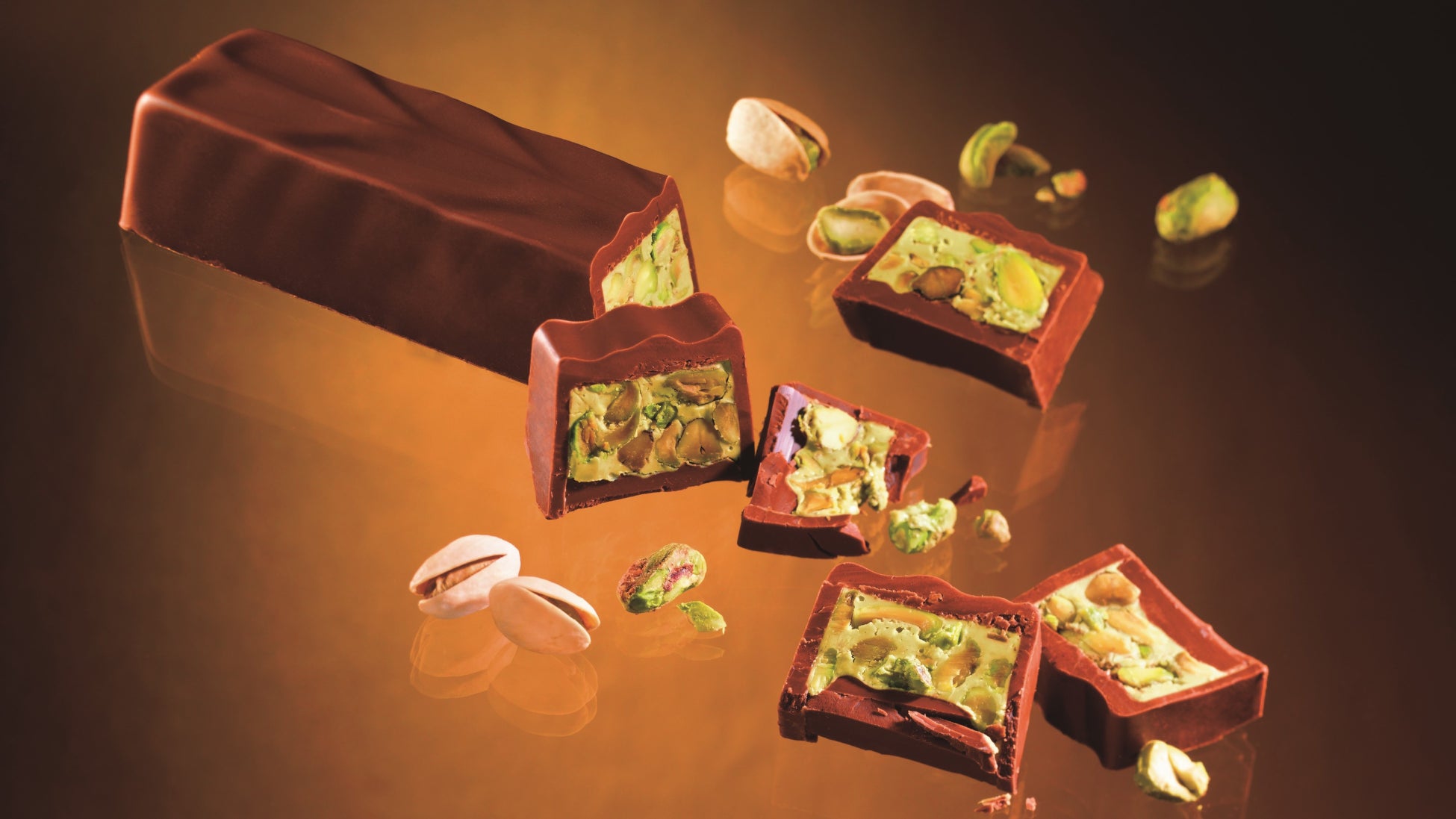 香ばしくコク豊かなピスタチオクリームに、深煎りしたピスタチオと塩がけしたピスタチオの2種類を混ぜ込んで、まろやかなミルクチョコレートに閉じ込めました。 切り分けると、なめらかなピスタチオクリームとたっぷり入ったピスタチオが表情豊かに顔をのぞかせます。 好きな厚さに切り分けて食べるスタイルが楽しいチョコレートです。