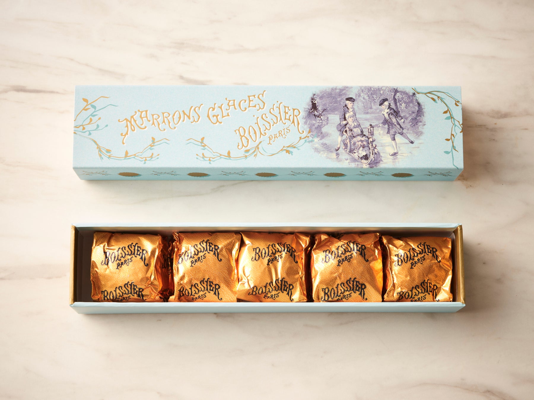 1827年創業の老舗砂糖菓子店「ボワシエ」のマロングラッセは「パリで一番」と称されるほど。ゆっくり糖度を上げて栗を煮ることで、柔らかく、素材そのものの味わいを引き出します。