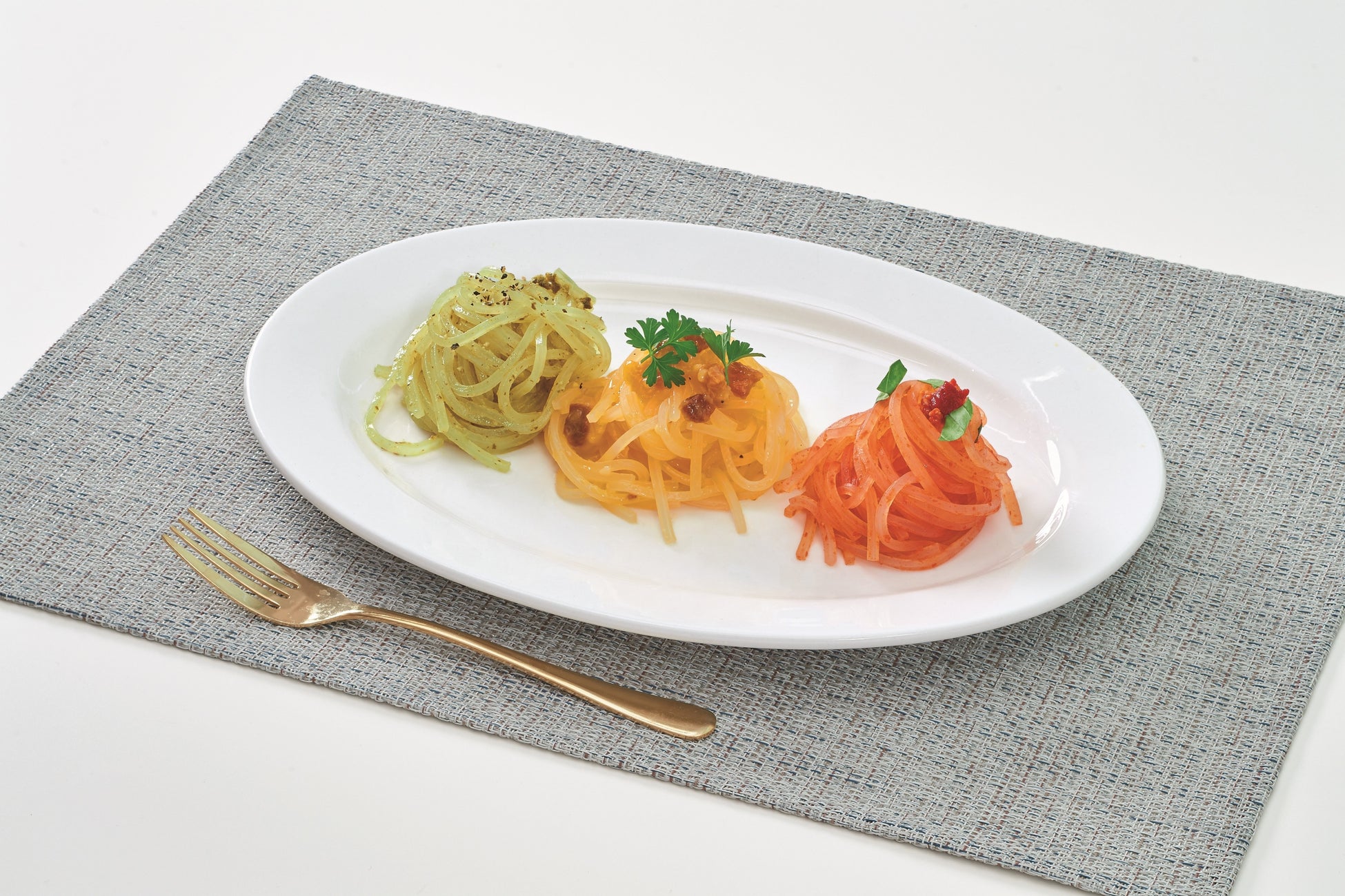 事前に役割分担を整えた学生たちは、限られた時間を有効に活用し、スムーズな調理を展開。料理のアイデアは、「マロニーちゃん」をそのまま麺として活かした料理、細かくカットして食感を工夫した料理、食品表示基準によるアレルギー物質(特定原材料とそれに準ずるもの)を含む原材料を使用していないことを活かしたアレルギー配慮メニューなど、学生ならではの独創性が光りました。完成した料理は見た目も華やかで、まさに「推しのマロニーメニュー」を探したくなるような魅力的な品々が揃いました。