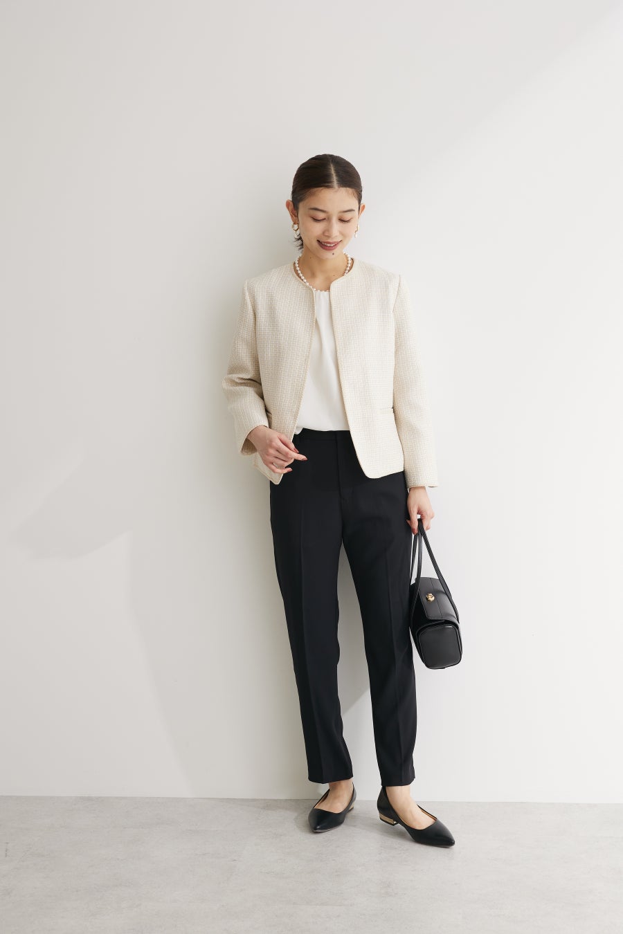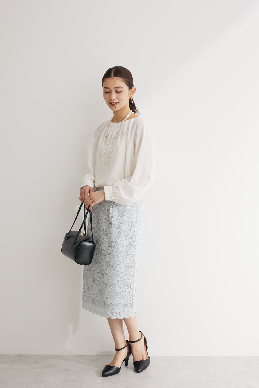 コラボコレクションは、全7型。女性らしい華やかなレース生地を使用し、上下セットでも着用できるブラウスやスカート、1枚で様になるワンピース、ストレッチ素材を使用したジャケットなど、様々な組み合わせでお選びいただけるアイテムをラインナップいたしました。本コレクションでは、手軽にオケージョンスタイルを楽しんでいただきたいという想いから、きちんと見えする素材やデザインながらも、リーズナブルな価格でご用意しております。オケージョン需要はもちろん、通勤着やカジュアルアイテムとMIXしたデイリーユースアイテムとしても活躍いただけます。