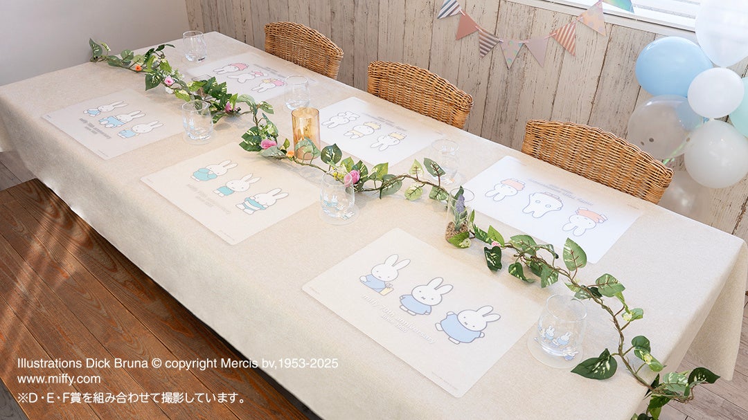 1955年に誕生した『ミッフィー』は2025年に70周年を迎えました。当くじでは、ミッフィー誕生70周年を記念した特別デザインを使用しています。各年代のミッフィーが1つのアイテムにデザインされ、パーティをイメージした実用雑貨が登場いたします。