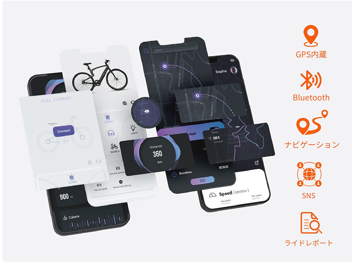 スマートフォンに限らず現代ではさまざまな機器がインターネットに繋がる時代。『Carbon 1』にも e-SIMが内蔵されており、Wifi,Bluetooth対応で自転車の常識を超えた機能が搭載されています。
