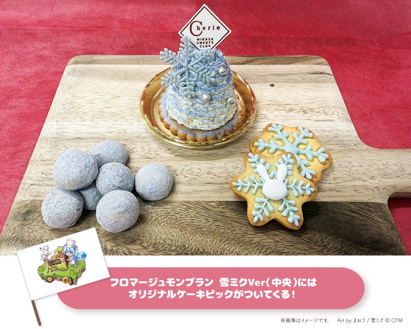 本キャンペーン用のオリジナルイラストは、これまで同様イラストレーター・まおうさんにご担当いただきました。メインビジュアルのデザインは、今回のキャンペーン内容にあわせてスイーツ盛りだくさんとなっており、『雪ミク』がペットキャラクターの『ラビット・ユキネ』と一緒に三笠の美味しいものを楽しむ様子が描かれています。