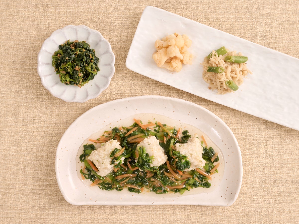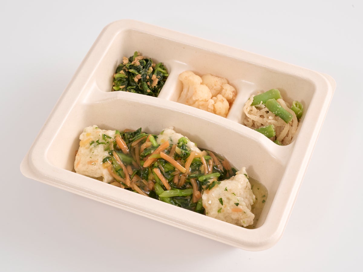 消化の良い白身魚を使用し、食欲がない時や、朝食・夜食にもぴったりのメニューを開発しました。鯛の旨みがつまった「つみれ」に生姜あんを優しくまとわせた本商品は、お出汁のほっとする味わいと、生姜の香りが心も体も温めてくれる一品です。 春菊、人参は生姜あんにたっぷりと絡むようカットサイズにもこだわっています。「あん」でひたひたに味が染み込むように仕上げたお野菜も一緒にお楽しみください。
