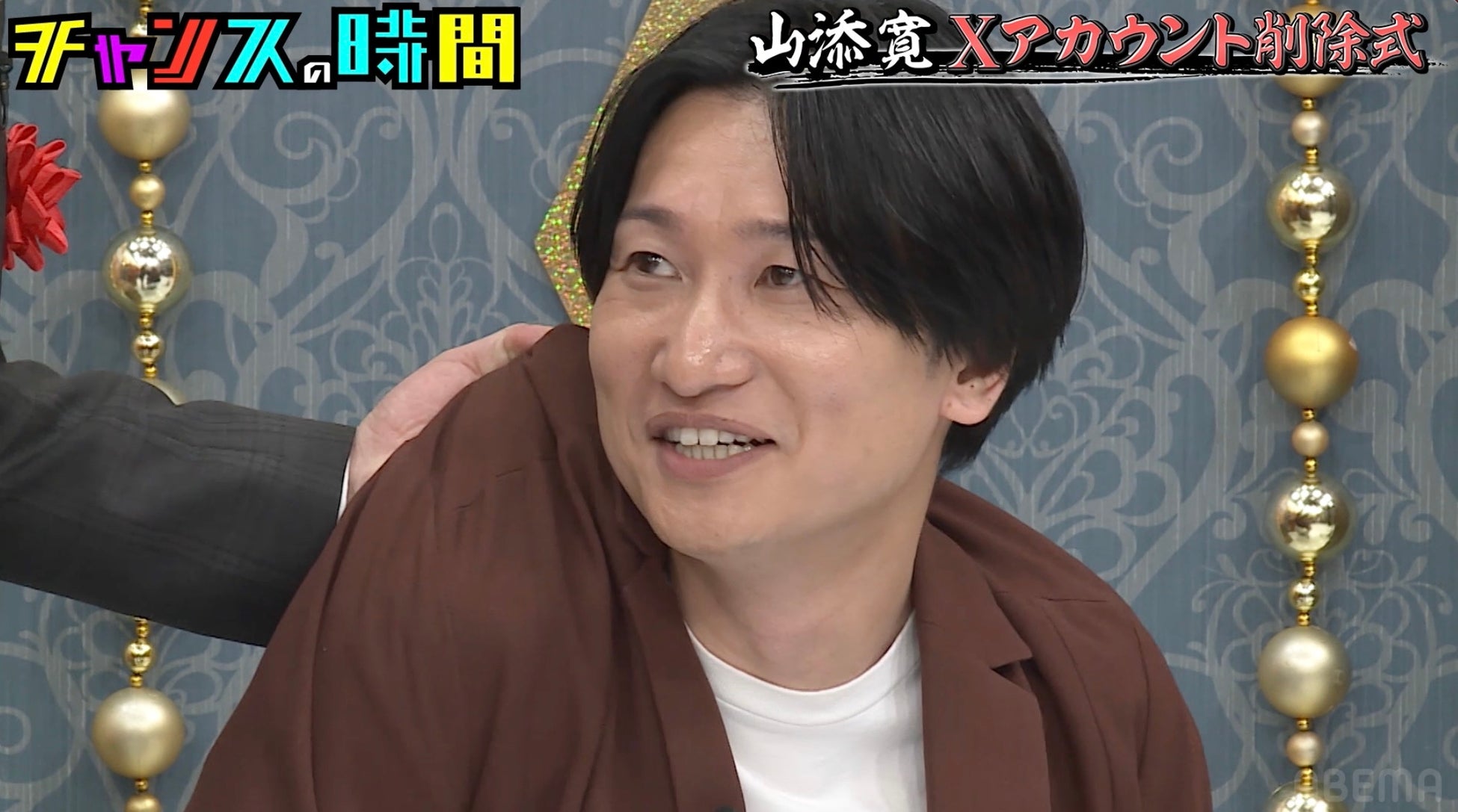 「Xアカウント削除式」では、Xでの“良かった思い出”について「Snow Manの佐久間大介さんとのやりとりでファンが急増した」と語った山添さんに、「これは増えます」と割り込んだ亜生さんが「Snow Manが何かつぶやいたら絶対に返信する、これは鉄則」と力説。しかし、山添さんは「(相手から)声をかけられないのに、テレビで見たとか共演しただけでその人にまつわるポストをして仲良いアピールをしようとする芸人もいる。それが気持ち悪い」とし、一連のトークでみんなが“佐久間くん”と呼んでいた中、亜生さんだけが“さっくん”と呼んでいたことに「こういう奴になりたくないから」と、普段“さっくん”と呼んでいるところを“佐久間さん”と変えてエピソードを語ったと明かします。番組冒頭、普段Xでは「牛丼食べたよ」などの何気ない日常をつぶやいていると話し、大悟さんから「芸人が何言うとんねんってなる」と追及されていた亜生さんが、ここで再び大悟さんから「ああいう奴が平気で『牛丼食べたよ』ってつぶやく」と追撃されることに。亜生さんは「やってますよ平気で」「『明日絶対スイカ食べよ』ってつぶやきますよ」と反論しますが、山添さんから「亜生が辞めるんやったら俺辞める」と追い込まれて…?