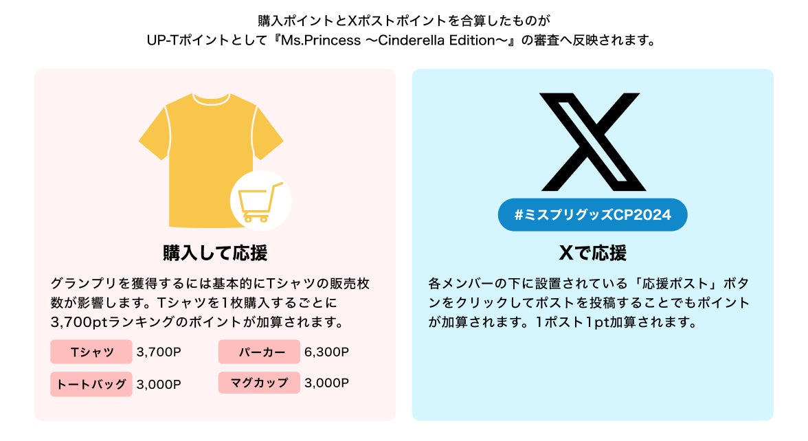 オリジナルグッズ作成サービス「UP-T」と「Ms. Princess Resort Edition supported」がコラボイベントを開催します!今回のイベントでは、街頭大型ビジョンへの出演権をかけたグッズ販売バトルが繰り広げられます。イベントでは、参加者が描き下ろしたこのイベント限定デザインのオリジナルグッズが販売されます。そして、ファンの応援や購入数がカギとなり、上位にランクインした参加者が、憧れの街頭大型ビジョンに出演するチャンスを得られます!ぜひ応援とともにグッズをゲットして夢を叶えましょう!