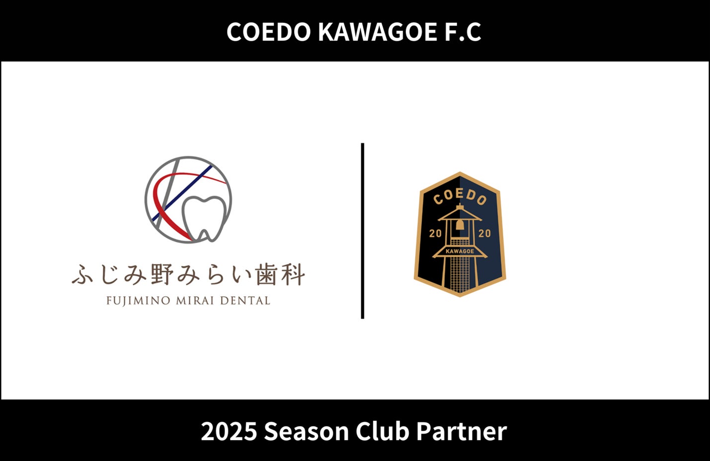 COEDO KAWAGOE F.Cを運営するCOEDO KAWAGOE F.C株式会社(埼玉県川越市、代表取締役 有田和生)は、歯周病、小児歯科、矯正歯科、クリーニング、歯科口腔外科、インプラントなど、多岐にわたる診療を提供し、地域の健康な口腔環境づくりに貢献する歯科医院、ふじみ野みらい歯科(埼玉県富士見市、院長 磯 一輝)と、2025シーズンのクラブパートナー契約を締結したことを発表いたします。