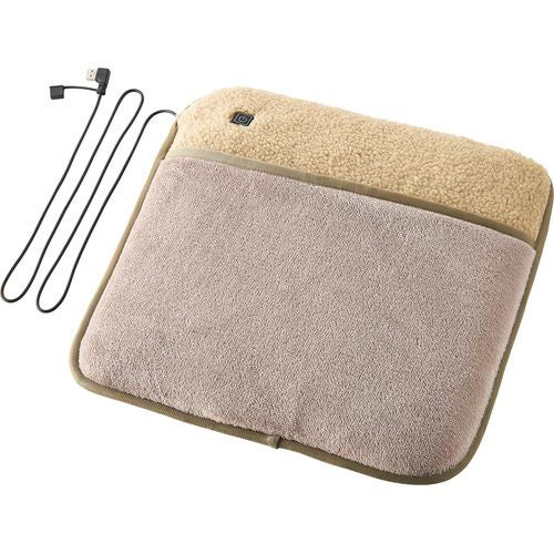 座布団としてはもちろん、足を入れられるポケット付きで足元ヒーターとしても使える2WAY仕様。気温や好みに合わせた快適な温かさを選べる3段階温度調節機能つき。持ち運びやすいコンパクトサイズで、裏面には滑り止めも付いており実用性もばっちりです。