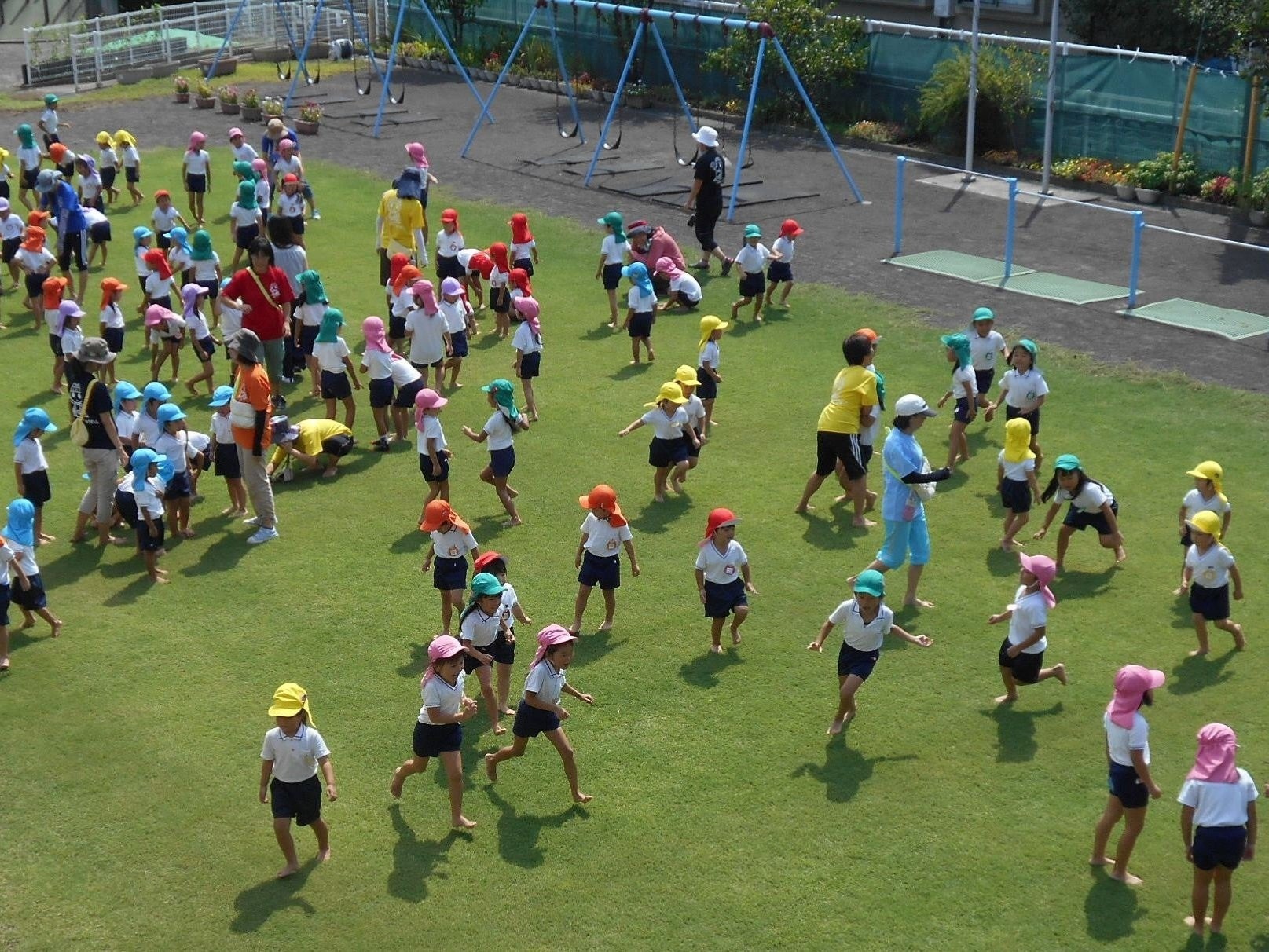 ・ケガも少なく、転んだときの痛みも軽減される芝生の園庭でのびのび遊んでいます。