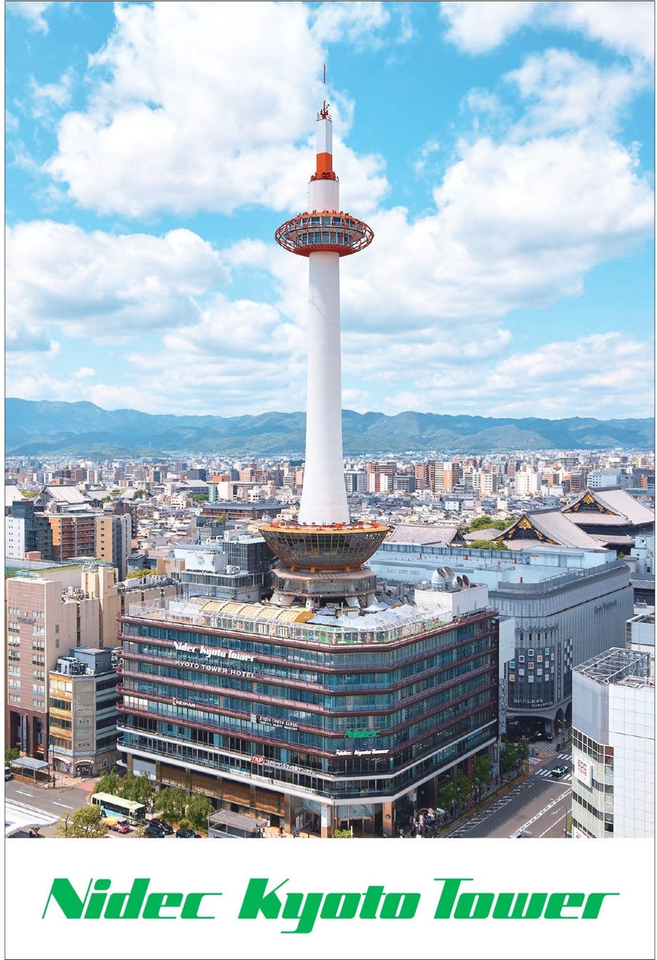 “産業・文化・観光の一大センターとして活用し、京都市の伸展に貢献する"ことを目指し建てられたニデック京都タワー。白くなめらかなフォルムは鉄骨を使わないモノコック構造で、海のない京都の街を照らす灯台をモチーフにしています。京都市街で一番高い地上100メートルの展望室からは、古都・京都の絶景パノラマを360度見渡せます。