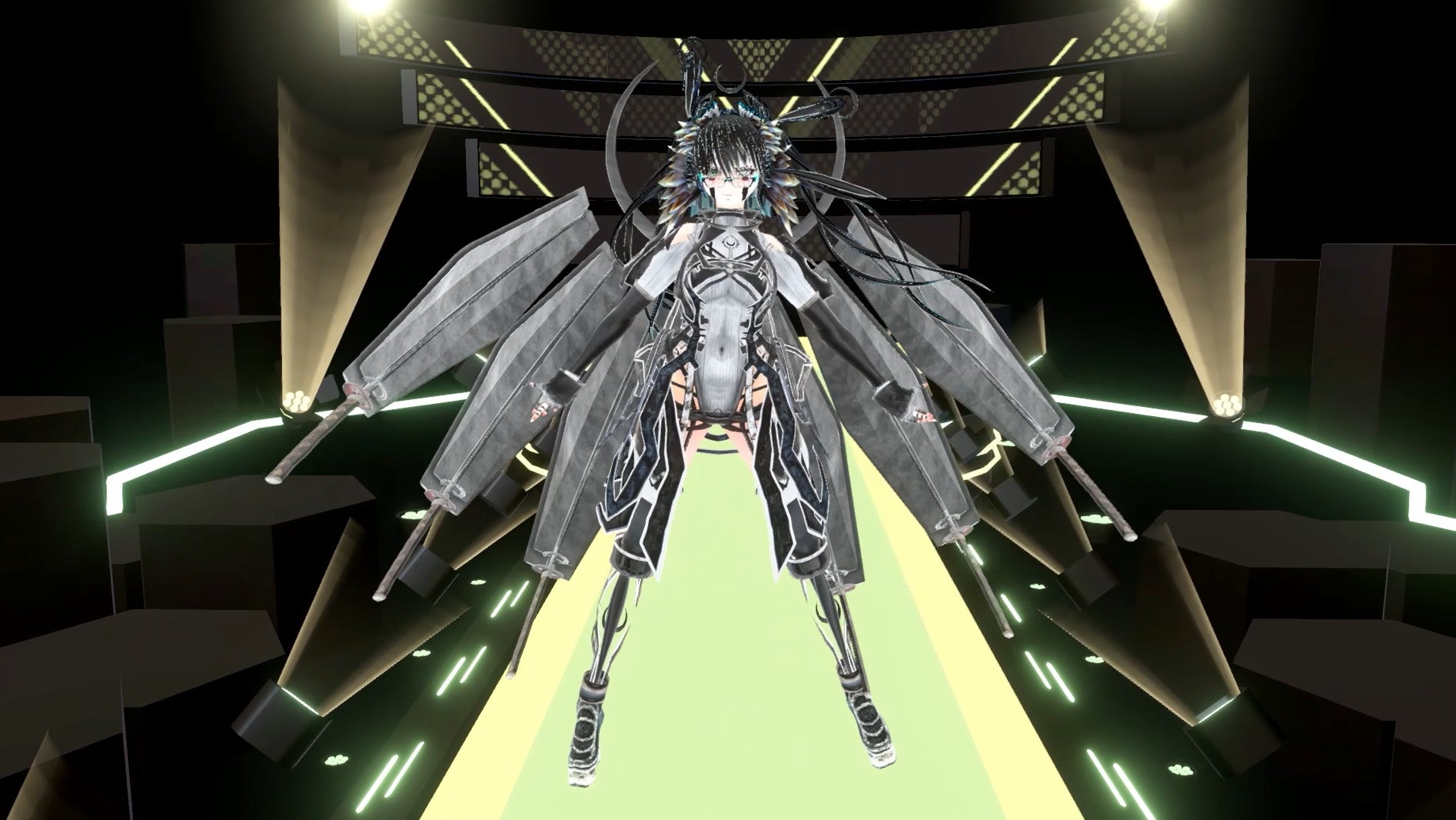 ●三木:これはランウェイで魅力が爆発しました。ポーズを決めた止め絵ビジュアルもとても素晴らしかったですが、ランウェイ用だったんじゃないかと思えるほどのギミックが効いていました。とくにランウェイ中盤の、剣をストレージに収納して浮遊フィンをジェネレートさせるしぐさが自然でめちゃくちゃカッコよかったです。