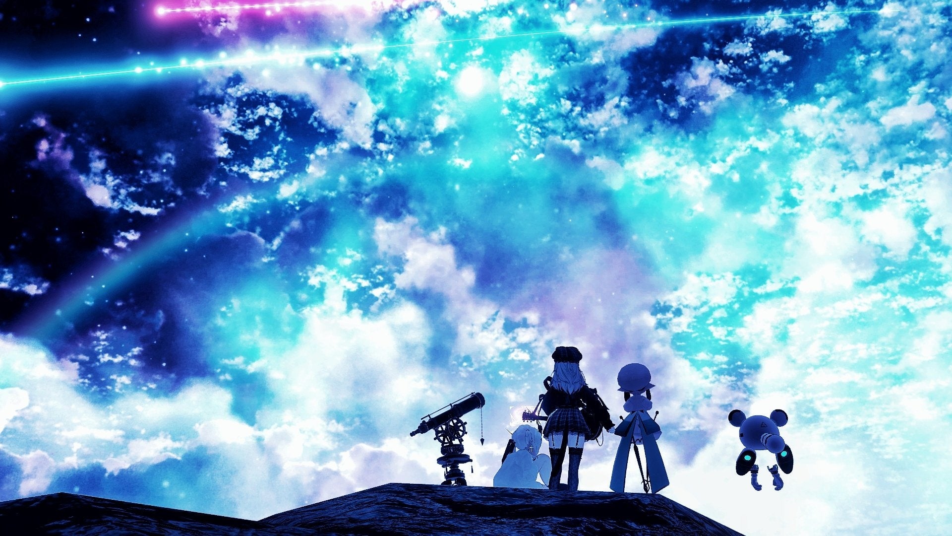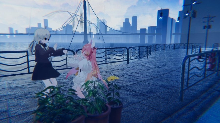VRChatの中で過ごす『日常』の一瞬の美しさと、小さな冒険を見事に表現しています。普段見過ごしがちなリアルの空や風景も、バーチャルで仲間とこうして立ち止まり見つめると、まるで壮大な宇宙の一部に触れているかのような感覚になります。この作品は、VRの中に秘められた広大な世界と、そこで過ごす仲間とのかけがえのない時間を思い出させてくれる、特別な一枚です。