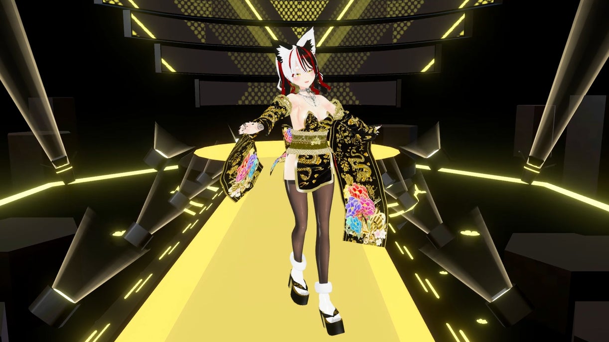●三木:着物はそもそも着るのが大変ですが、アバターなら簡単に着られるし、すこし大胆なデザインでも、歩きにくさや汚れなども気にせずに楽しむことができます。そういう良さが詰まったアバターデザインだと思いました。見栄えも華やかで素敵です。