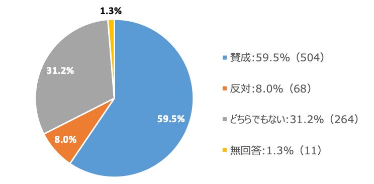 また、職場での連絡ツールとしてLINEグループに参加することをどう思うか聞いたところ、59.5%が「賛成」、8.0%が「反対」、31.2%が「どちらでもない」と回答しました。