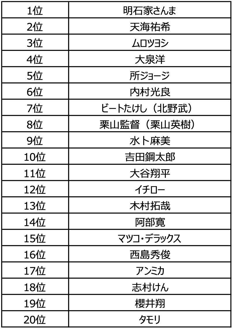 4位以降は下記の方々がランクインする形になりました。特に明石家さんまさんについてはZ世代を含め、すべての世代から支持されています。