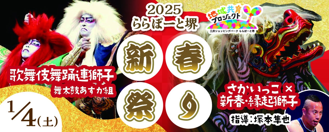 三井不動産商業マネジメント株式会社(所在:東京都中央区 代表取締役社長 大林修)が運営する三井ショッピングパーク ららぽーと全国19施設(TOKYO-BAY、柏の葉、豊洲、立川立飛、横浜、海老名、湘南平塚、新三郷、富士見、磐田、沼津、名古屋みなとアクルス、愛知東郷、甲子園、和泉、EXPOCITY、堺、門真、福岡)は、2025年1月1日(元日)~1月13日(月・祝)の期間、「ららぽーとバーゲン」を開催いたします。