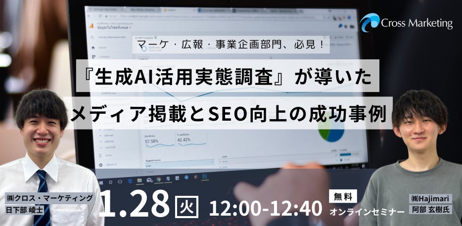 株式会社クロス・マーケティング(本社:東京都新宿区 代表取締役社長兼CEO:五十嵐 幹、以下当社)は、1月28日(火)にセミナーを開催いたします。