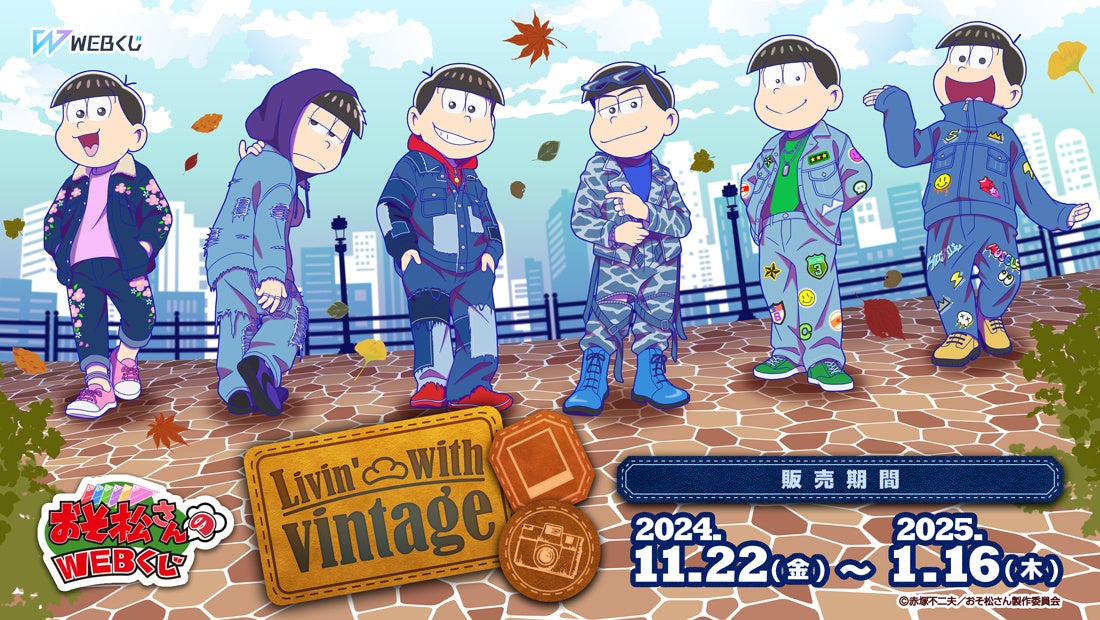 2024年11月22日(金)より、「おそ松さんのWEBくじ第24弾『Livin' with vintage』」の販売を開始いたしました。